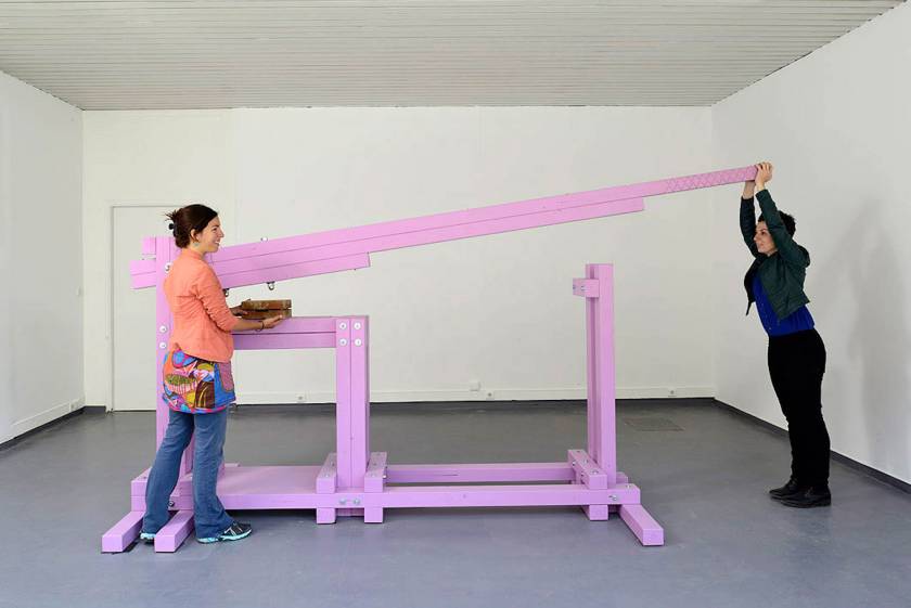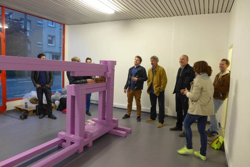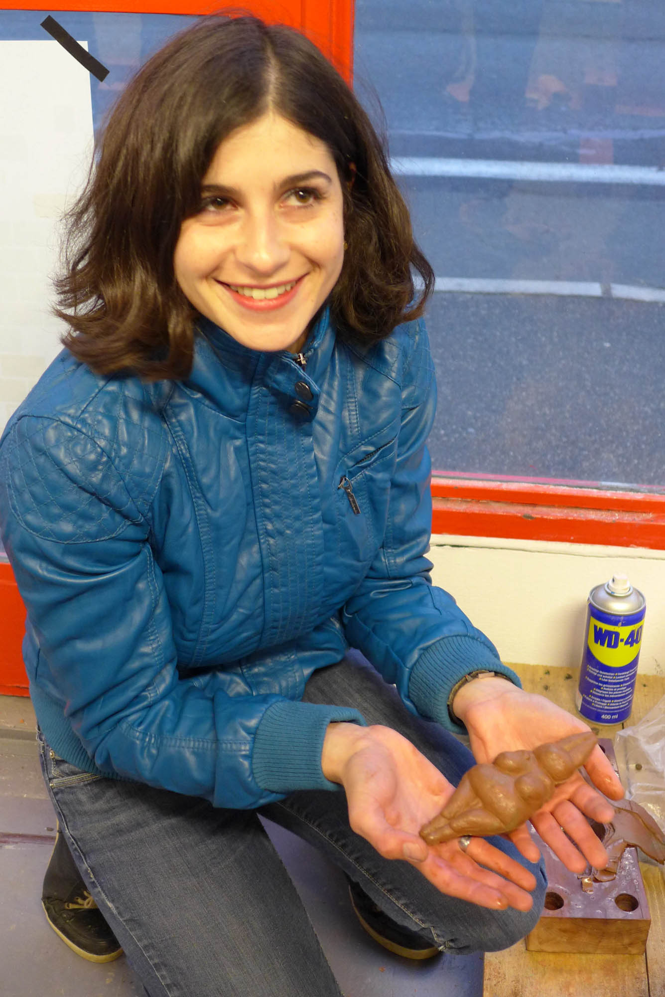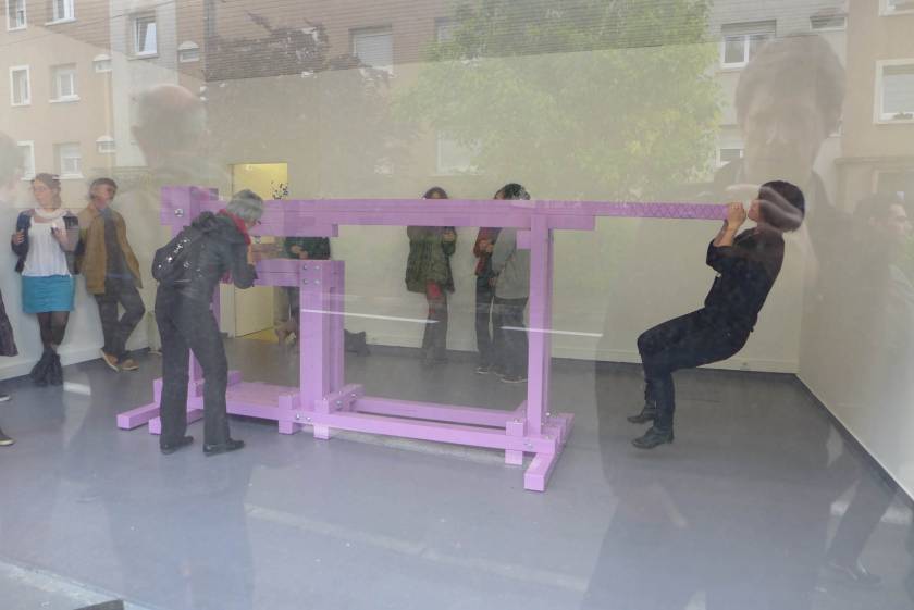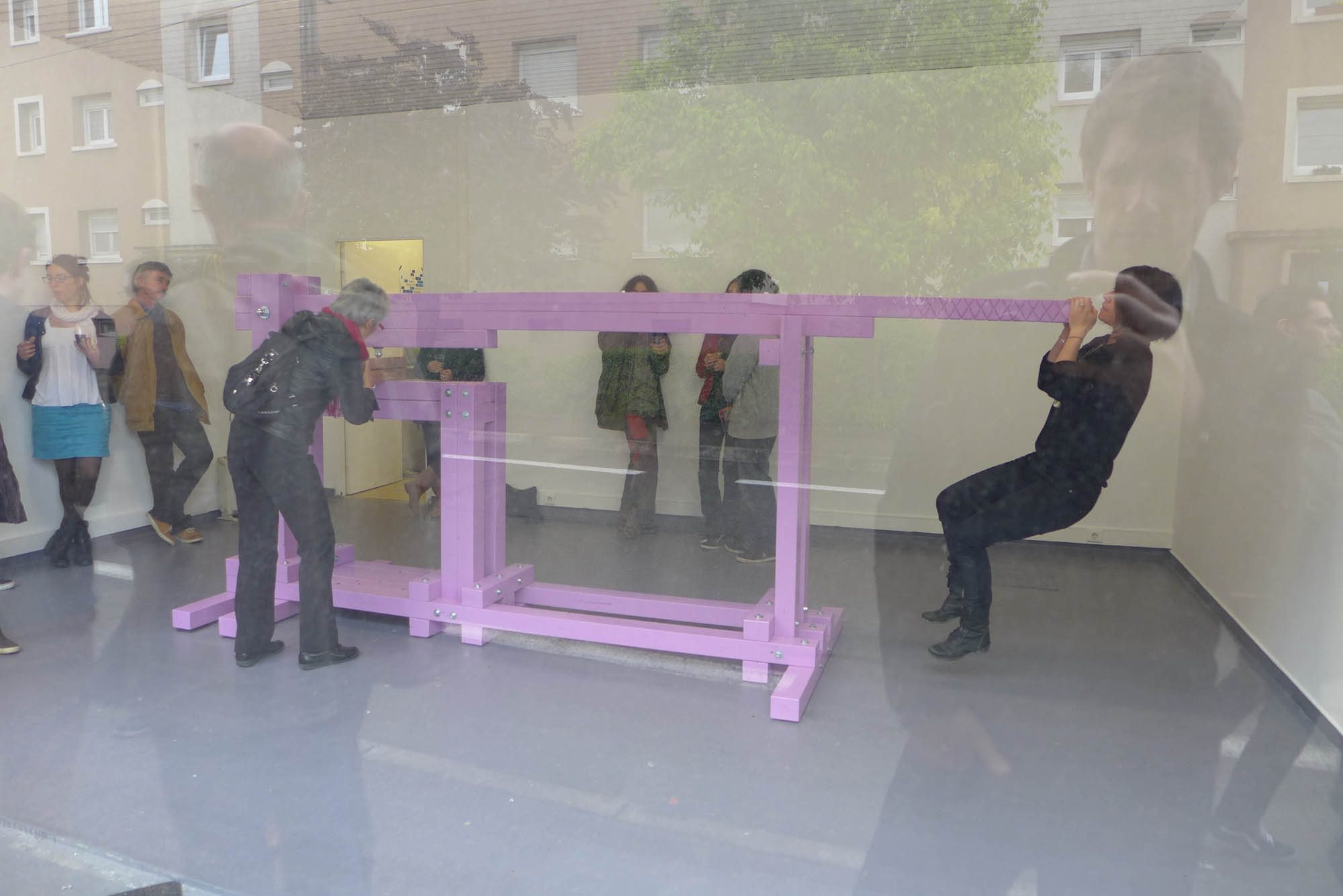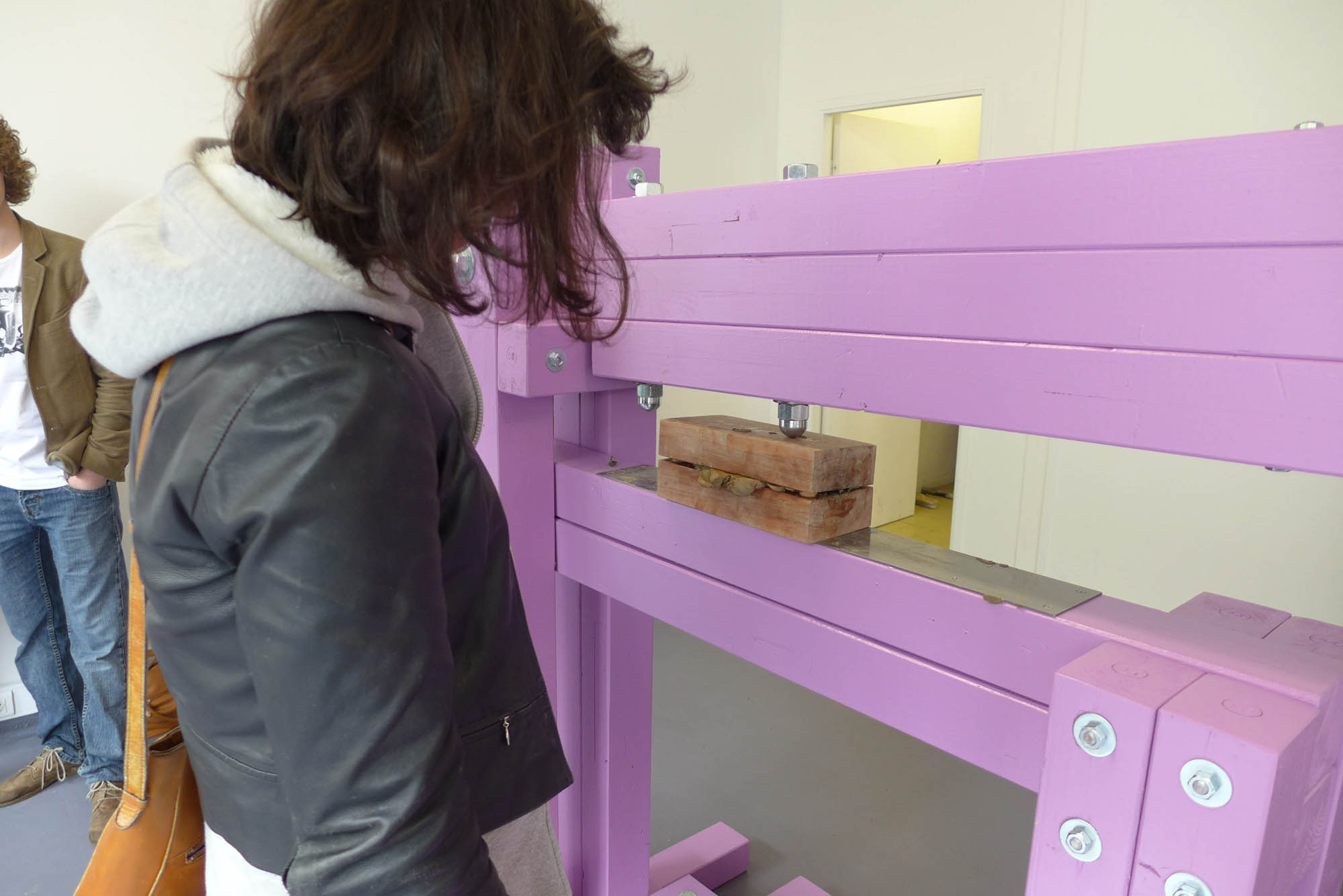Invité à exposer à Toshiba House, espace indépendant à Besançon, Christian Gonzenbach propose de construire un outil archaïque : un appareil reproducteur. L’espace n’est occupé que par ce dispositif en forme de presse-ail. Ce système permet de produire des figures de Vénus-Lapine, adaptation de l’artiste des premières sculptures humaines connues. Chaque spectateur s’empare d’une poignée d’argile de carrière et presse sa propre statuette qu’il emporte. C’est le visiteur qui produit les sculptures qui disparaissent aussitôt, disséminées dans la ville.