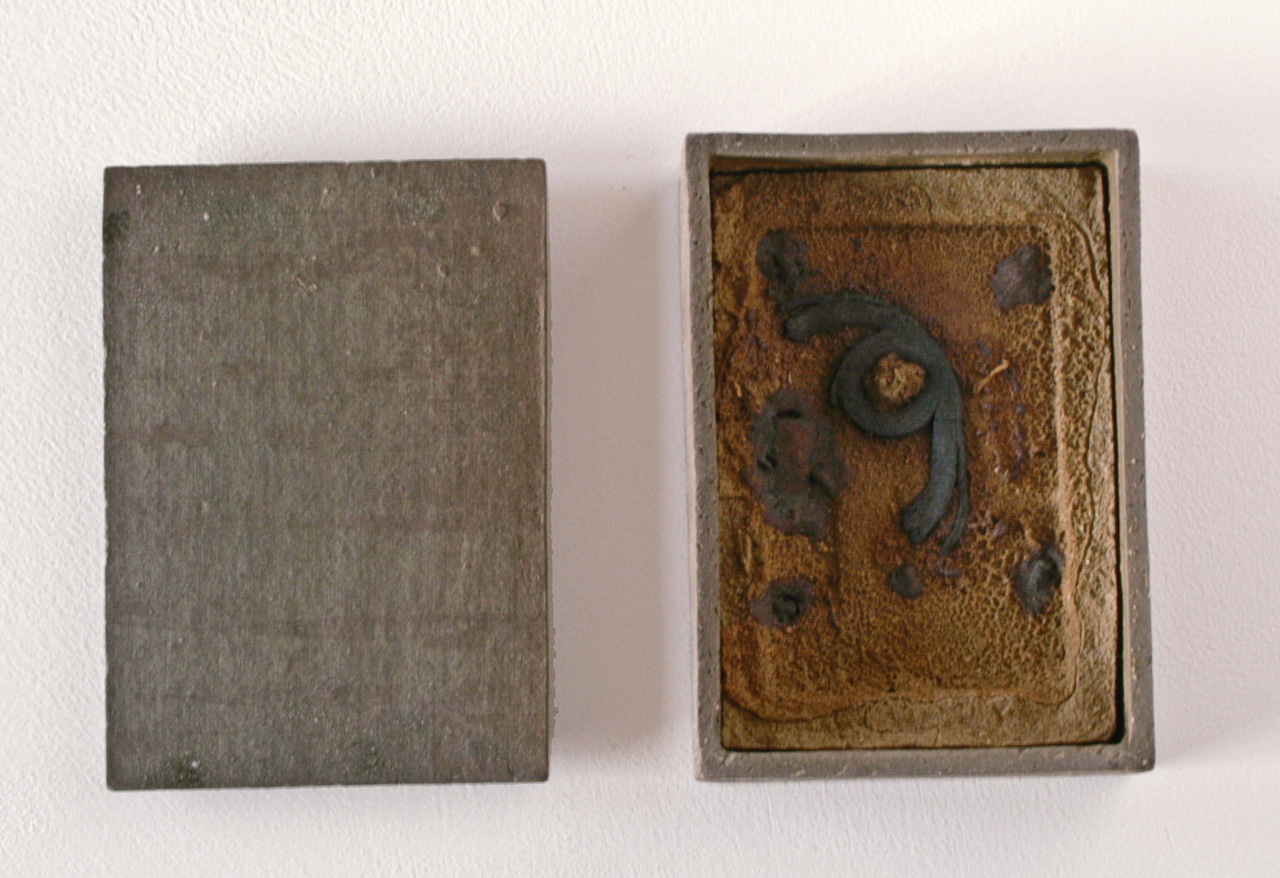Realized in the land of the Rising Sun and echoing the Japanese art of wrapping, Funeral Rites consists of objects, such as batteries, a light bulb, a tube of toothpaste, a VHS, a lighter, etc., that are enclosed in ceramic boxes that act as coffins. Instead of being disposed like most everyday banal things, here the objects – at the end of their use, purpose – are treated to a noble ceremony. As if in the ritual of cremation, they are fired at 1200?C burning off all, including plastic and glass, but the outline traces of the oxidation of metal parts.