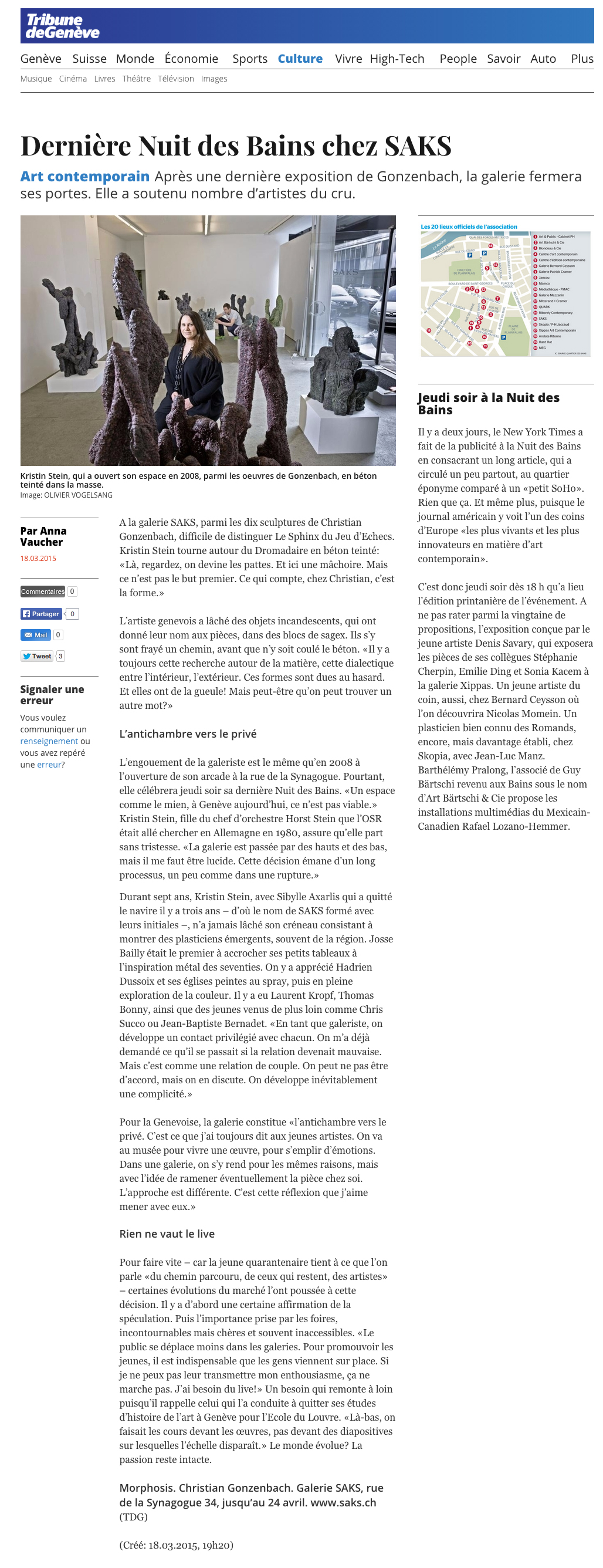 Exposition solo à la galerie SAKS du 19 mars au 24 avril 2015