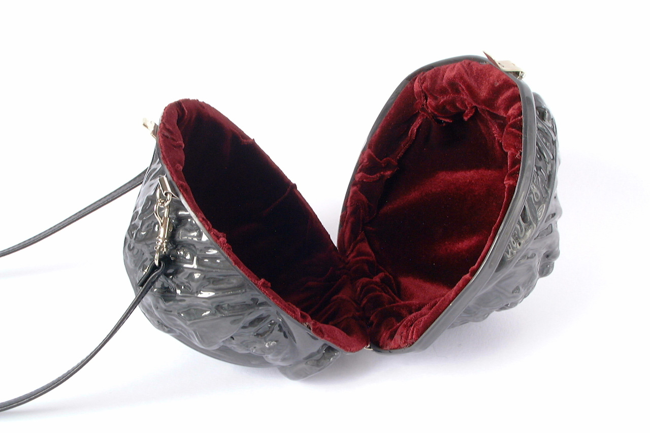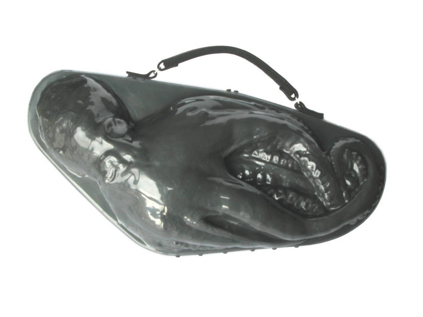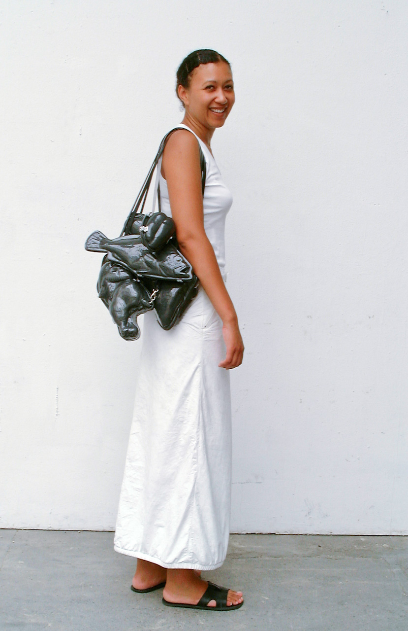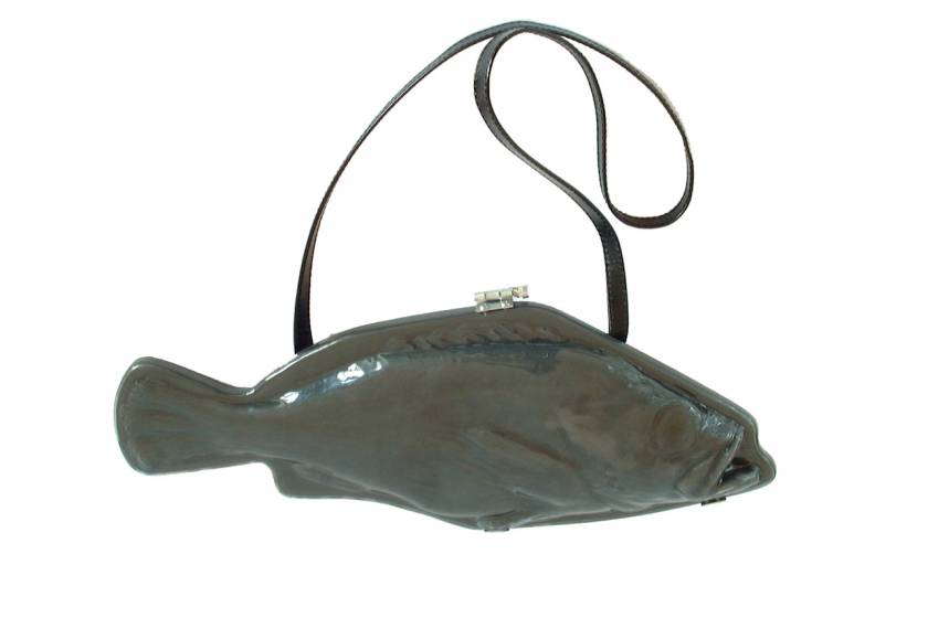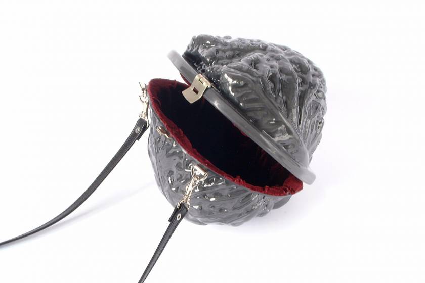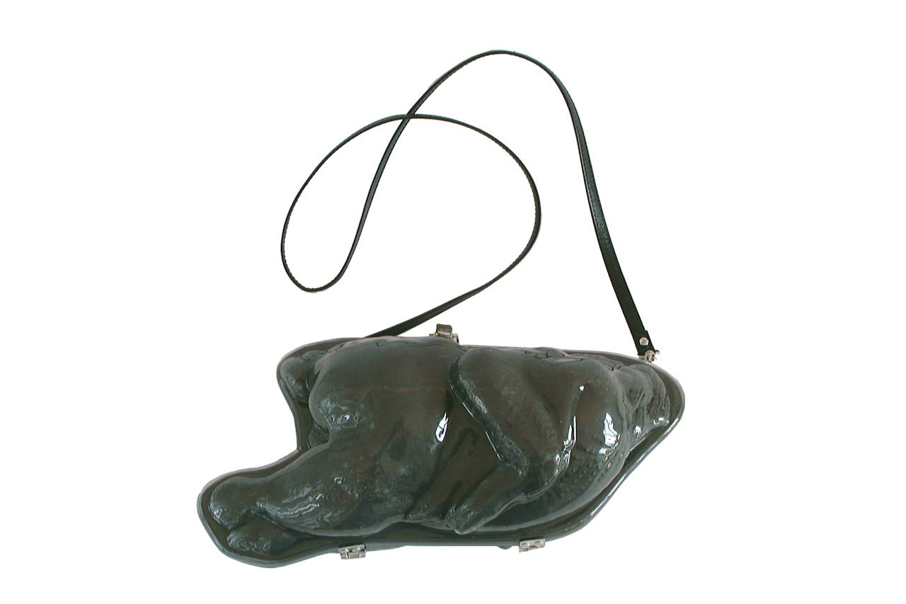 Des étuis noirs tapissés de velours rouge évoquent des étuis d’instruments de musique, mais reprennent la forme d’aliments et se portent sur l’épaule comme des sacs à main. Ces derniers ont été moulés sur de vrais poisson, poivron, gigot, poulet, sandwich, asperges, poulpe, chou et aubergine. L’aliment lui-même, reproduit à l’échelle 1/1, ne pourrait entrer dans cette boîte qui s’apparente pourtant également au bento japonais ou à une lunch box.