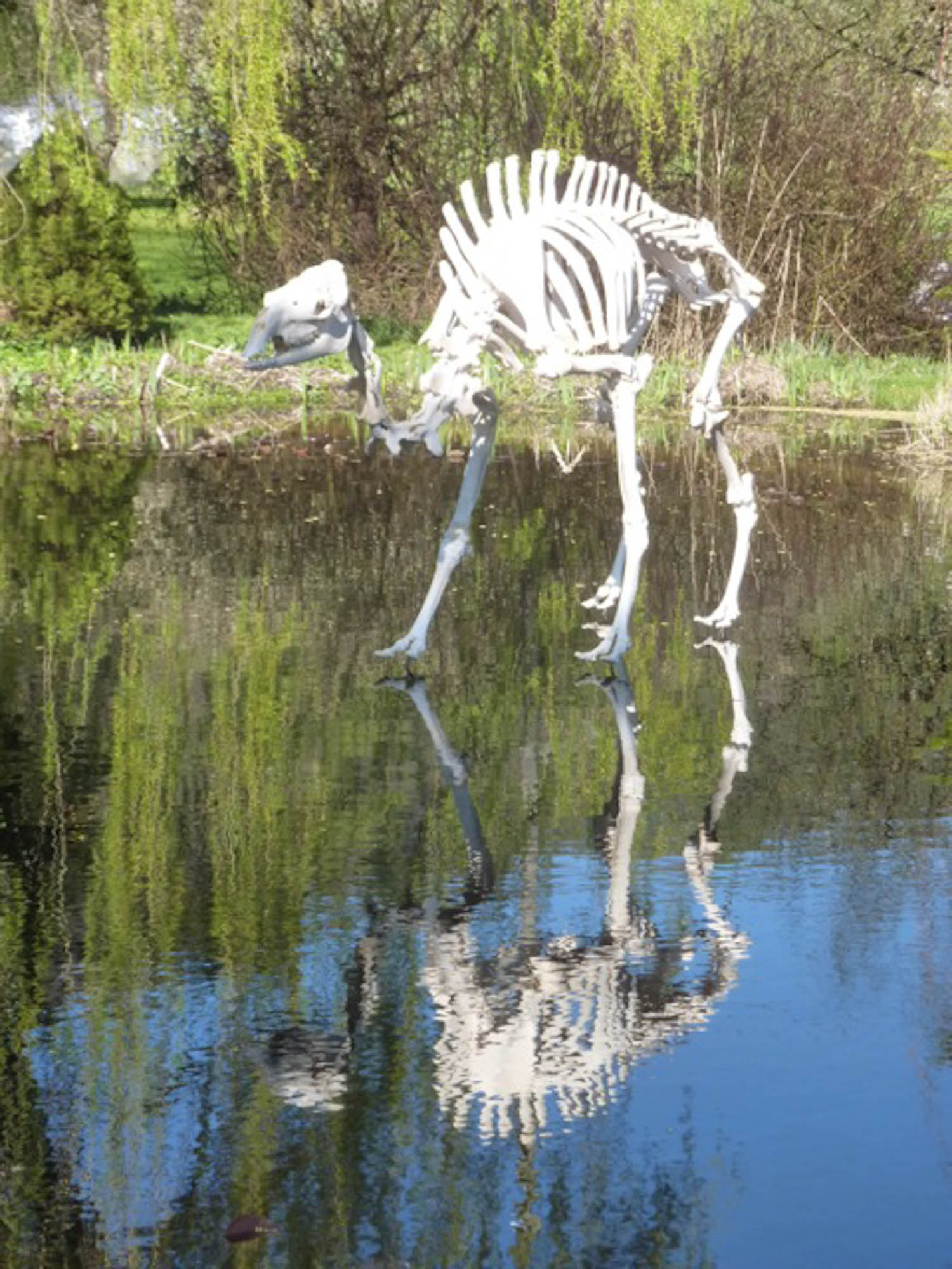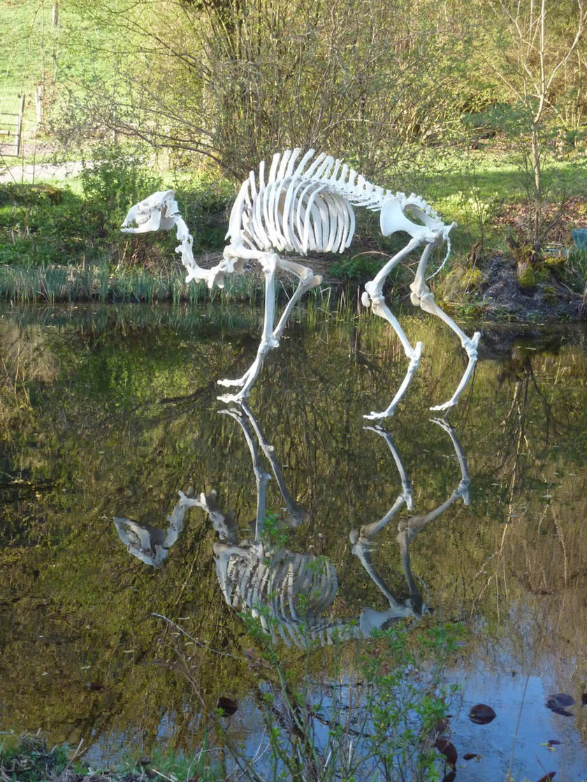Fata Morgana contains every element of the classical oasis: the sun, the pond, the kamel and the skeleton. But in this installation of Christian Gonzenbach, nothing holds in its correct place. The kamel skeleton is walking on water...