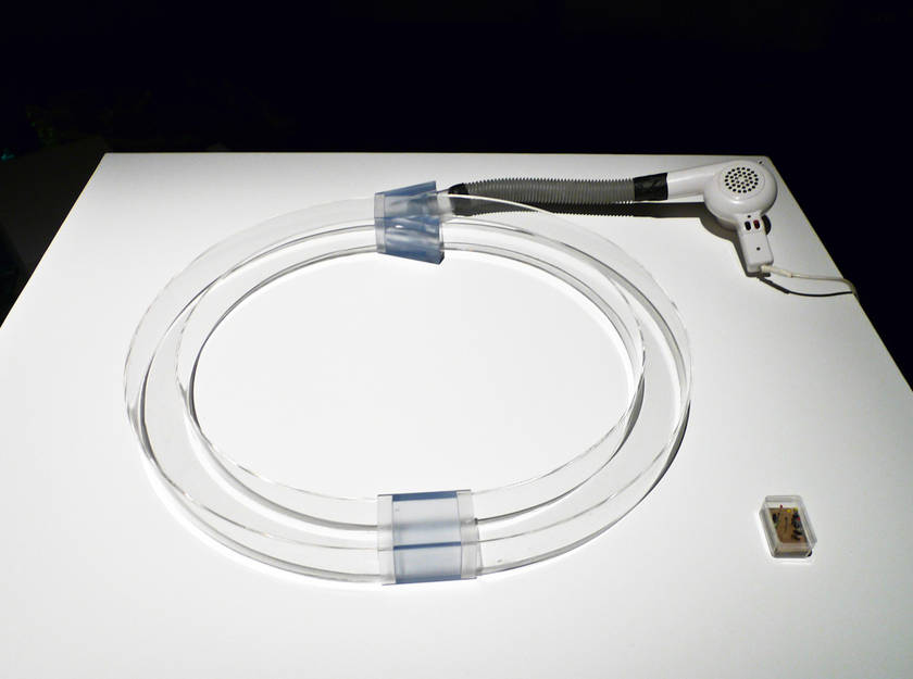 Flyotron is a fly accelerator made with a hairdryer. Using the similar principles as physicists who accelerate particles in order to discover their properties, in this instance, particles were substituted with flies who already have the capacity to move on their own. Faithful to the original proton collider at CERN, the fly-collider is constructed in the shape of figure 8 in order to create new species of insects from the colliding flies.