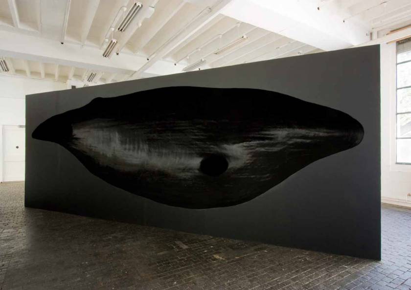 Hval, Scandinavian word for whale, is a 3D installation that approximates the scaffolding of shipbuilding. Consisting mainly of vacuum left by the body of whale that has disappeared, this scale-to-life sculpture blurs the line between the prey and the predator. The ship side is made of light wood in strict geometric fashion whereas the dark opposite side reveals more organic form accentuated by the black hole, which is whale’s pectoral fin on the positive side, creating a striking visual impact.