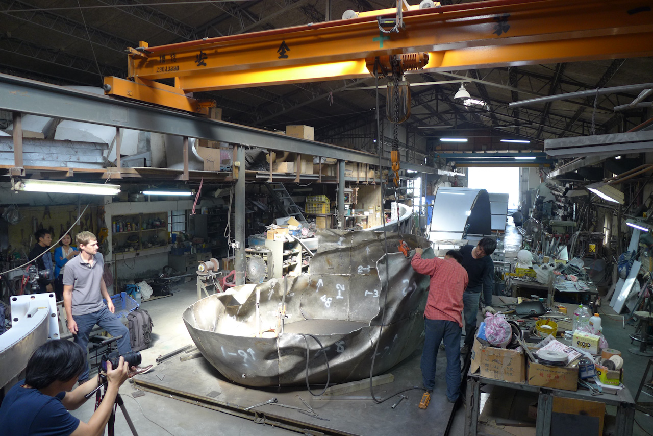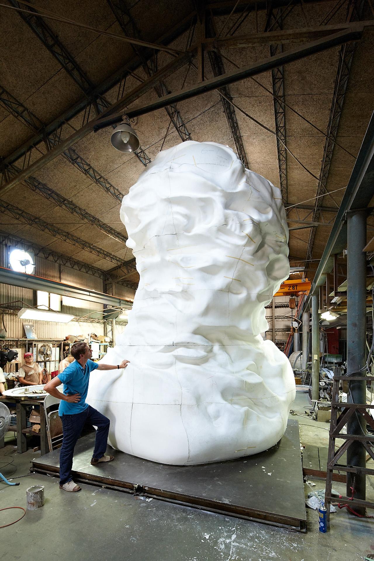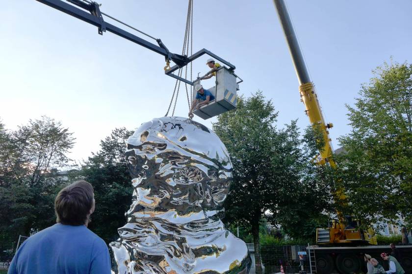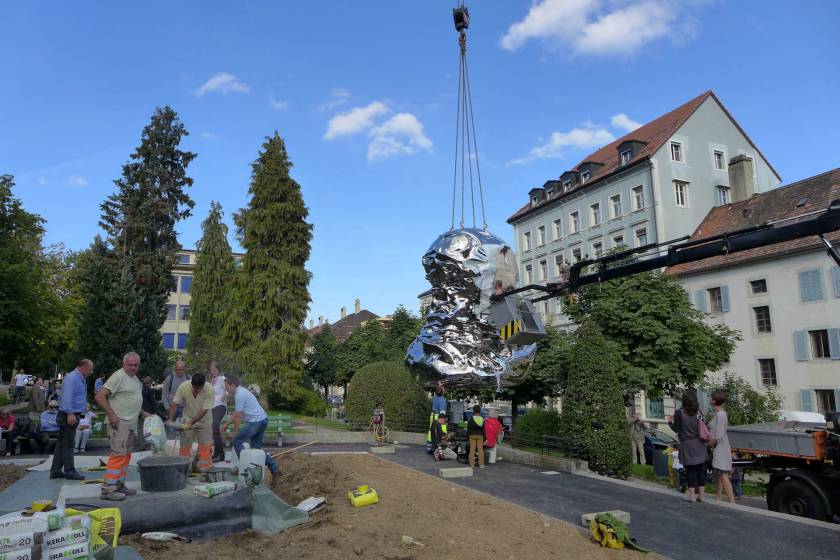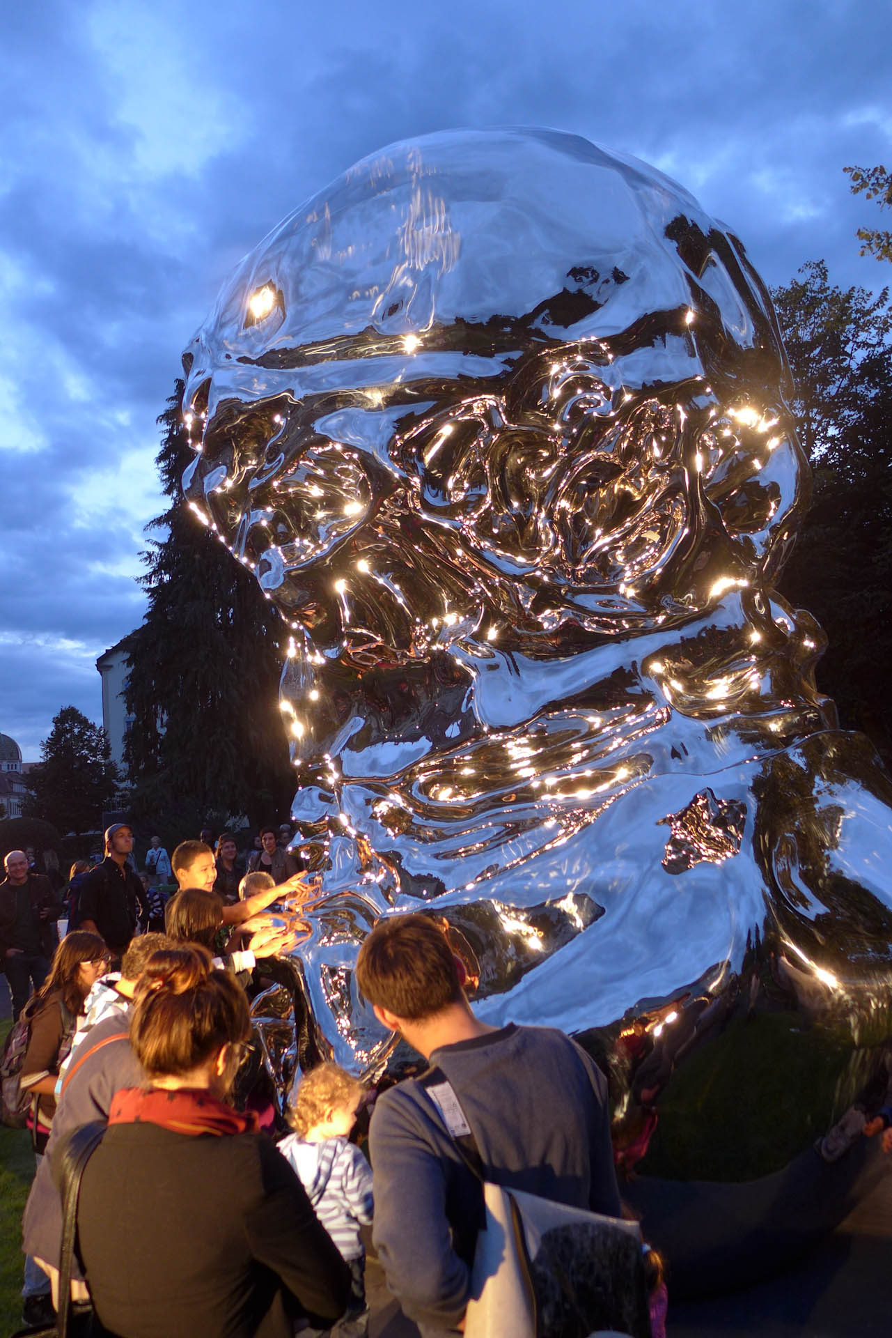 the town of La Chaux-de-Fonds, Switzerland, Chevrolet’s birthplace. As the winner of this prestigious event, Christian Gonzenbach used a photograph of Mr. Chevrolet (with driving goggles and scarf no less) as a starting point and rendered the image as a 3D model. He then reworked the surface with a silicone mold, in turn making the famous man unrecognizable and demanding an endured inspection to discover the figure behind the surface. The process resulted in a form that is as mysterious and complicated as the man whose legacy was unforeseeable even by Chevrolet himself. The final sculpture is constructed in stainless steel which is then mirror polished – a fitting homage to the man who held a close relationship with the material during his remarkable lifetime.
