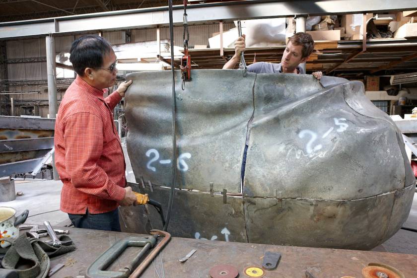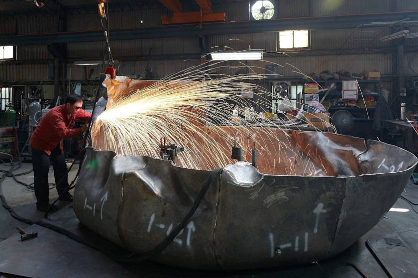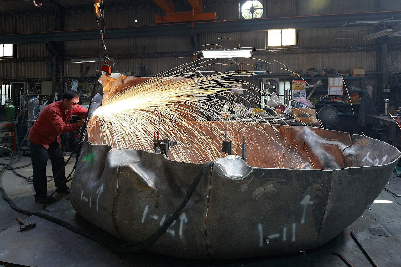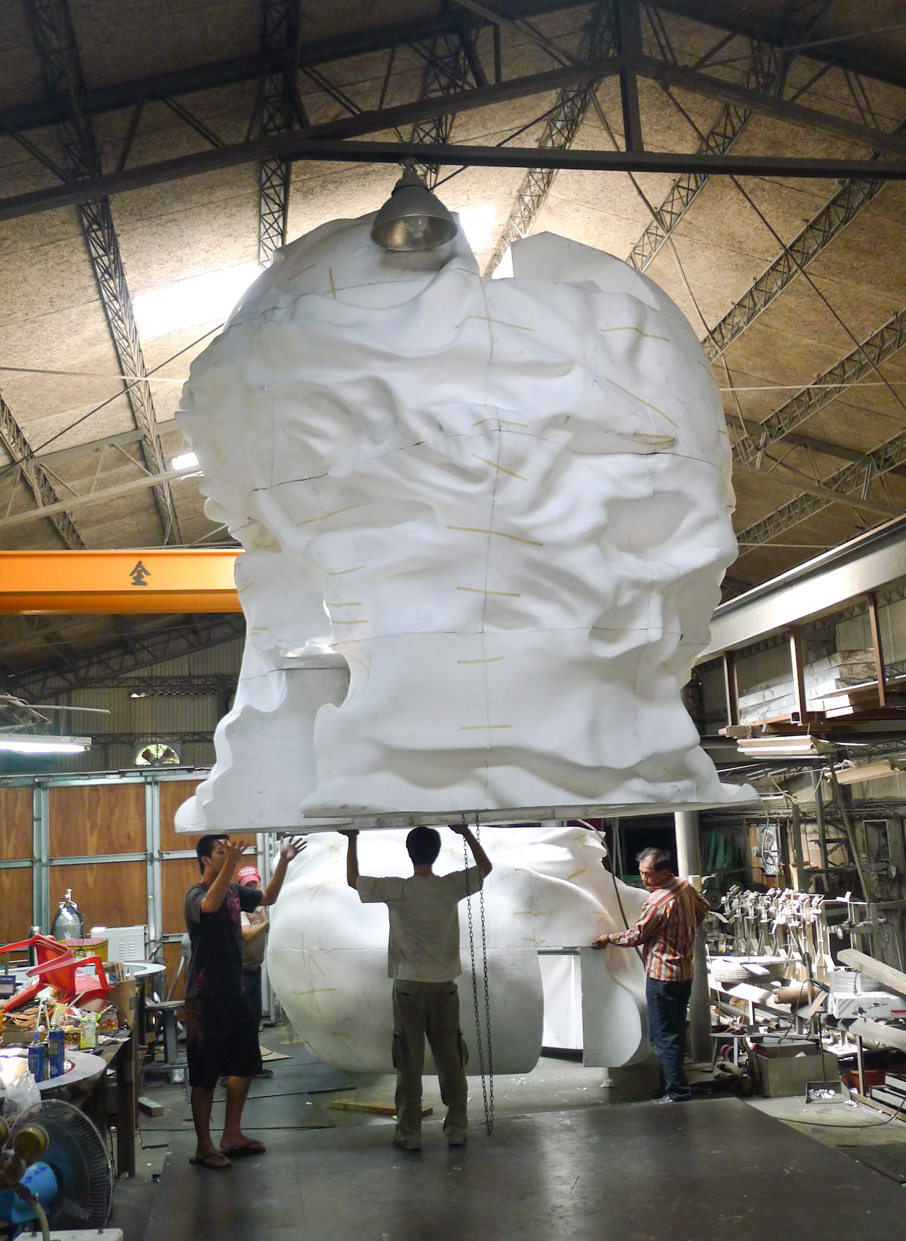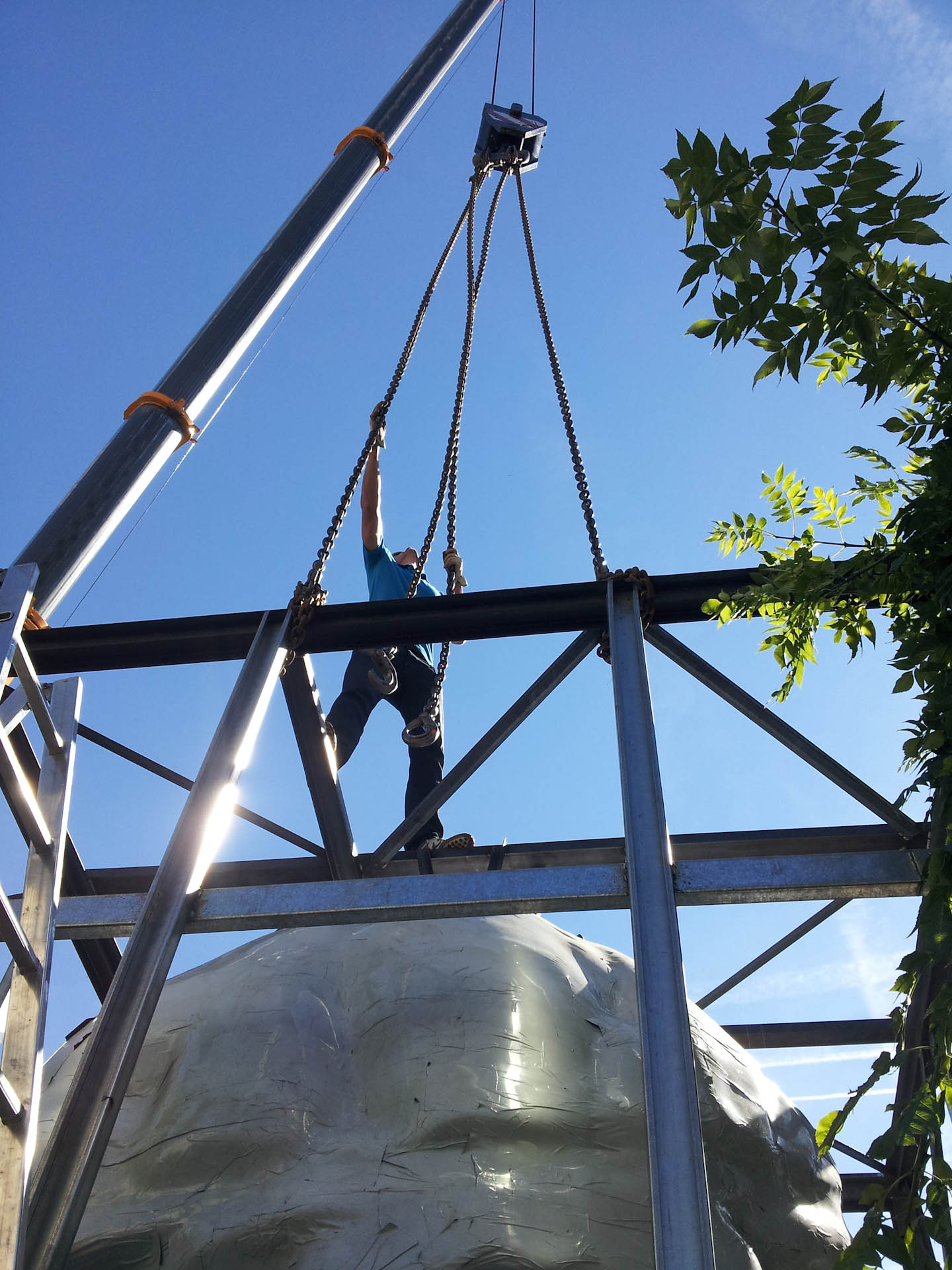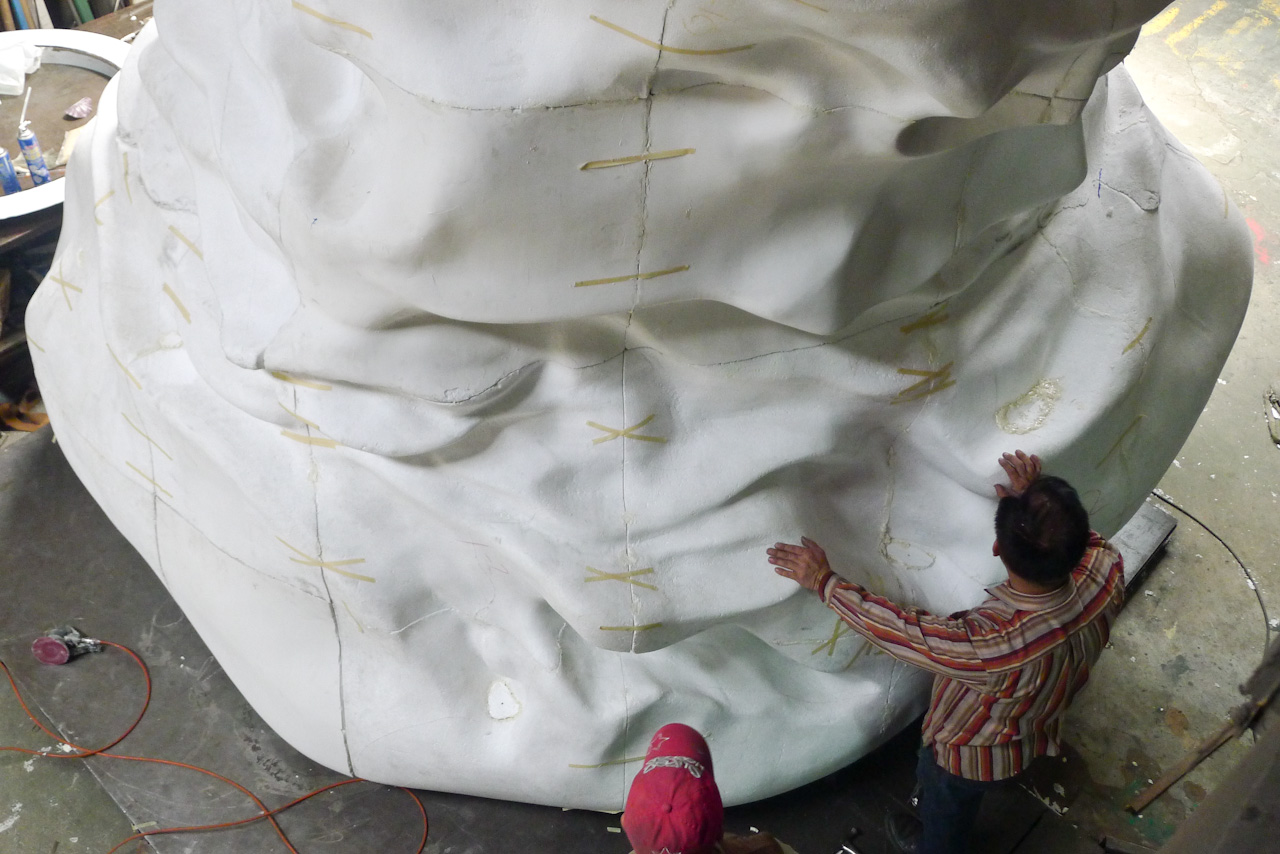 the town of La Chaux-de-Fonds, Switzerland, Chevrolet’s birthplace. As the winner of this prestigious event, Christian Gonzenbach used a photograph of Mr. Chevrolet (with driving goggles and scarf no less) as a starting point and rendered the image as a 3D model. He then reworked the surface with a silicone mold, in turn making the famous man unrecognizable and demanding an endured inspection to discover the figure behind the surface. The process resulted in a form that is as mysterious and complicated as the man whose legacy was unforeseeable even by Chevrolet himself. The final sculpture is constructed in stainless steel which is then mirror polished – a fitting homage to the man who held a close relationship with the material during his remarkable lifetime.