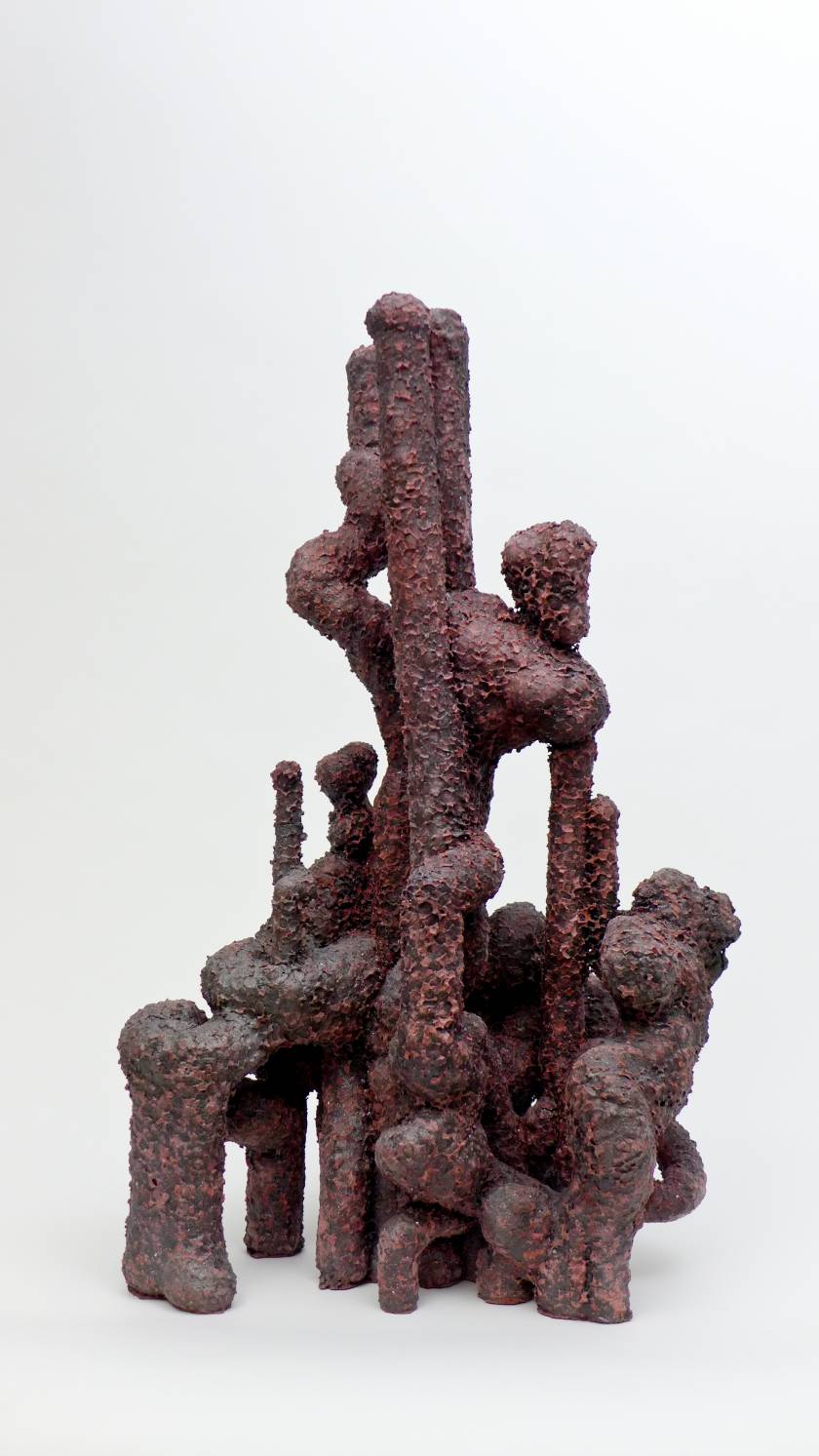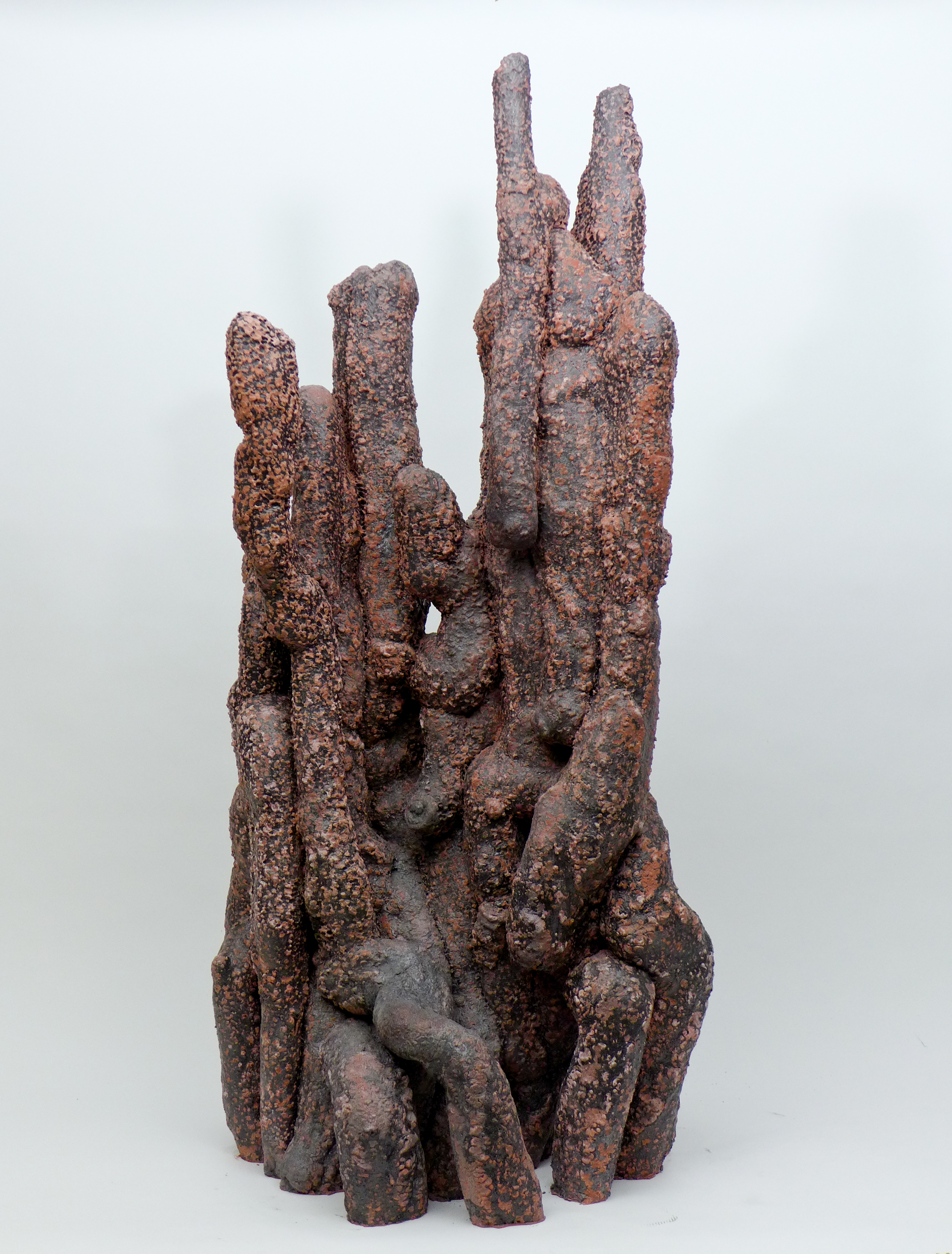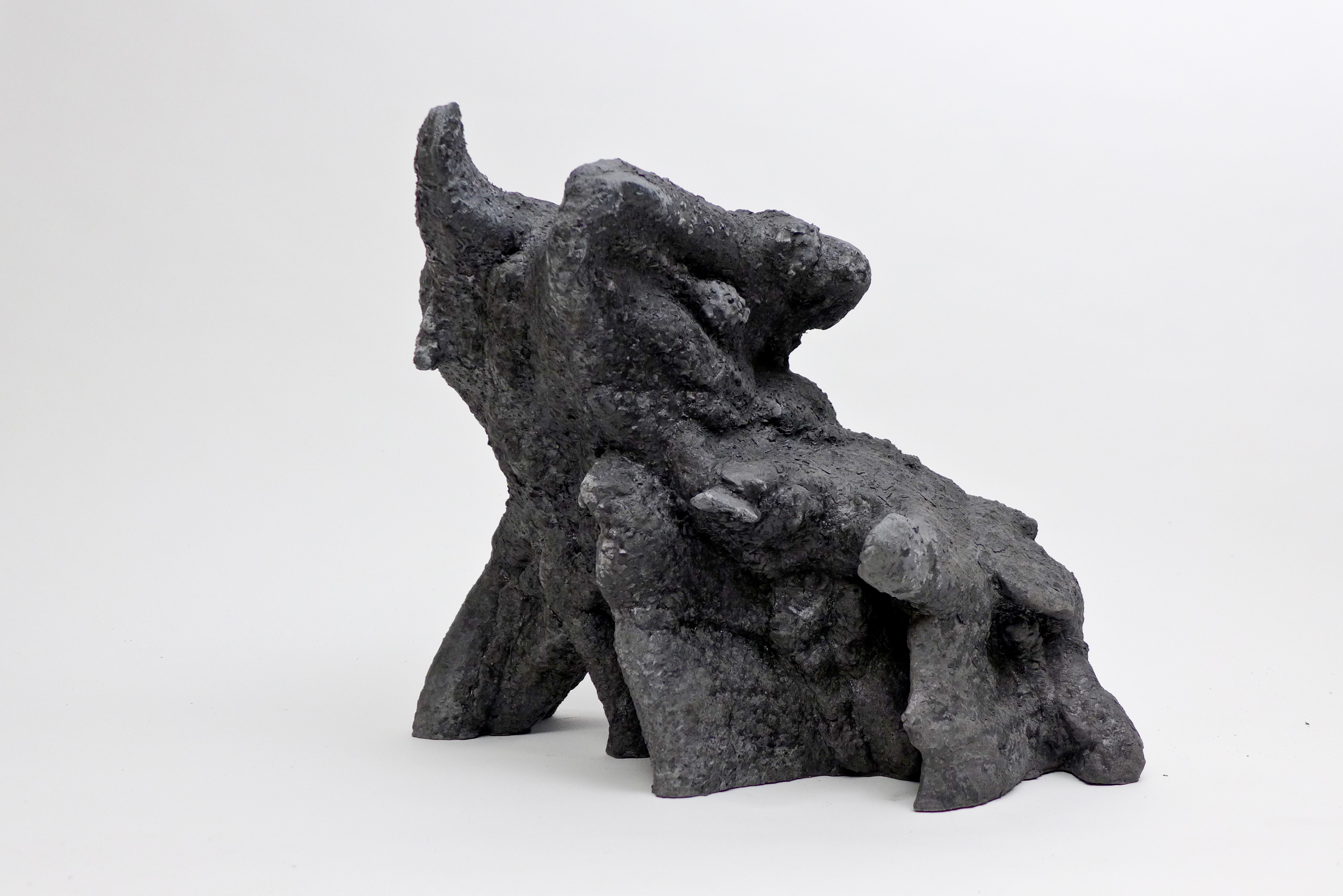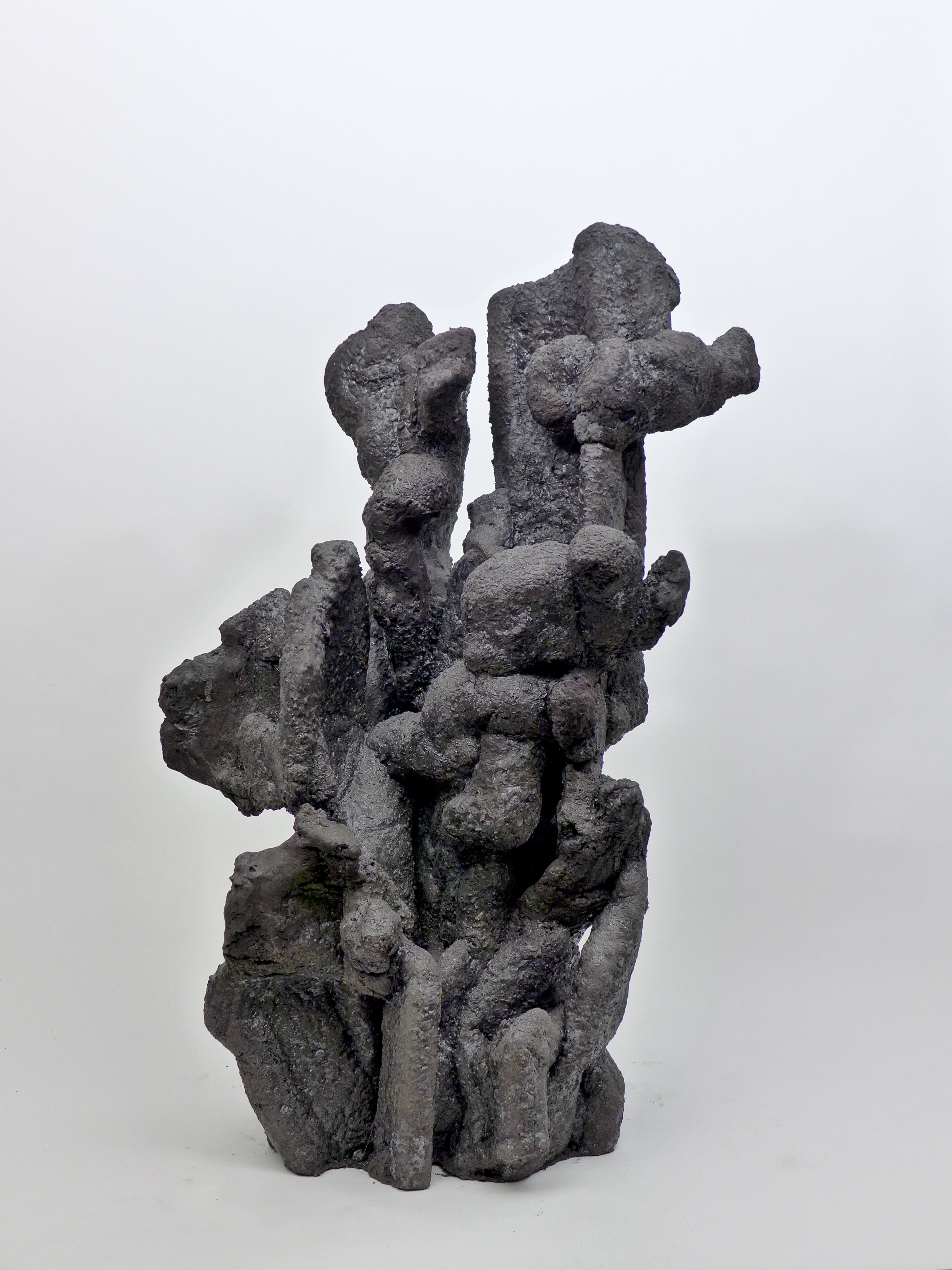 Poursuivant sa quête de l’inversion, l’artiste a creusé des formes en négatif, utilisant des outils incandescents qui forent librement des tunnels dans des blocs de polystyrènes tel des insectes xylophages. Les sculptures sont ensuite réalisées en remplissant ces galeries de béton et en détruisant la gangue de polystyrène. Les formes apparaissent alors, surprenantes, intestines. On est face à des structures d’organes, des stalactites artificielles, des architectures de notre propre intérieur. Elles s’apparentent aux g?ngshí, ces rochers insolites que les lettrés chinois collectionnent et qui selon la tradition auraient grandi sous terre comme des patates pour former ces montagnes miniatures et grotesques propres à la méditation.