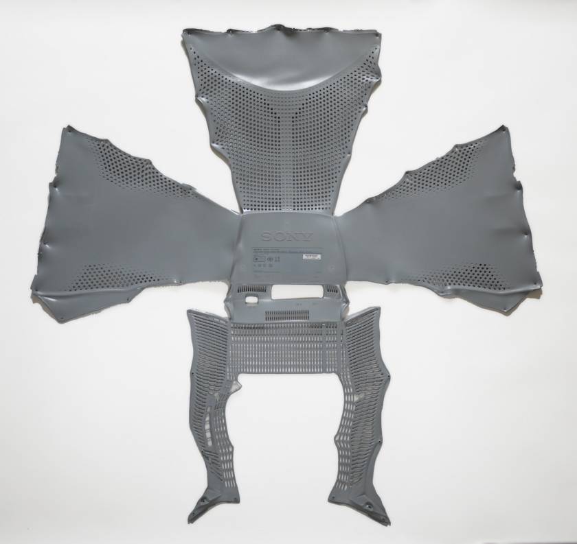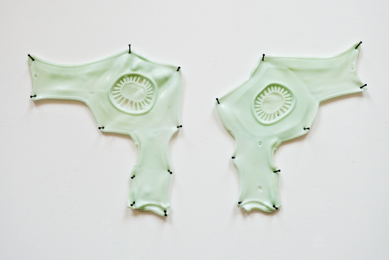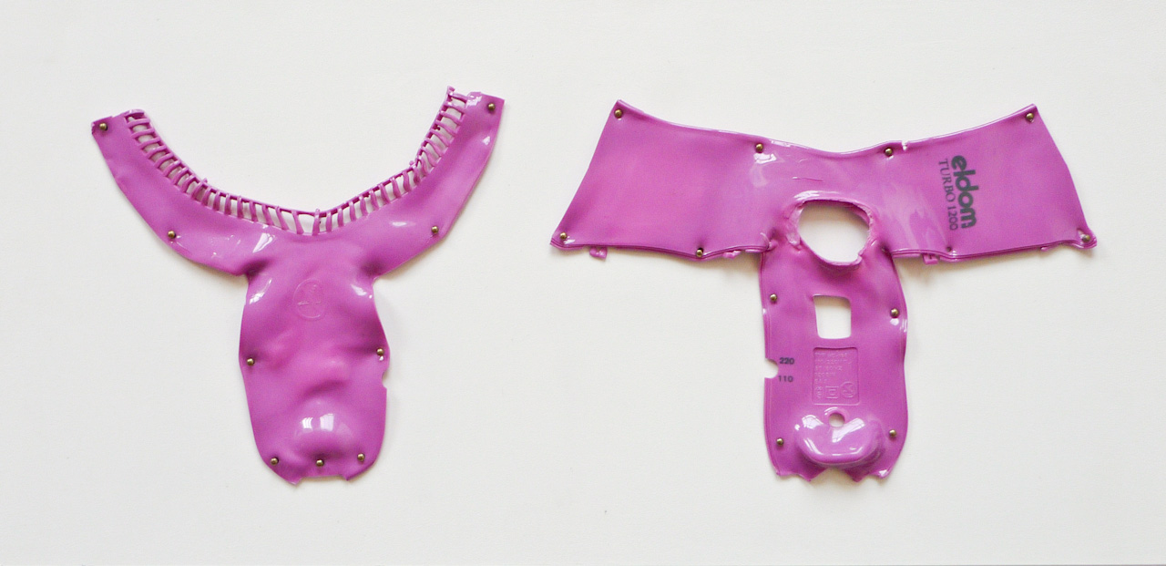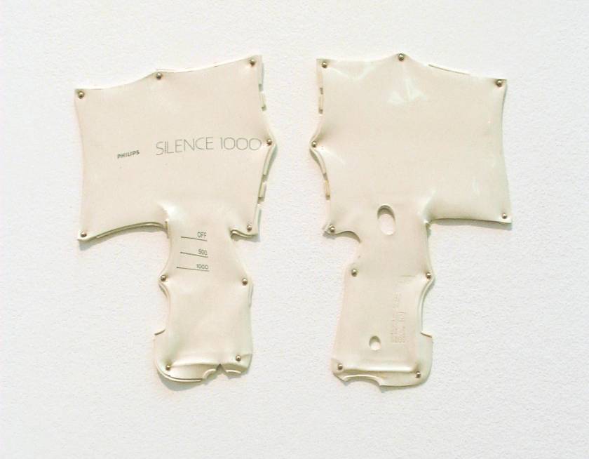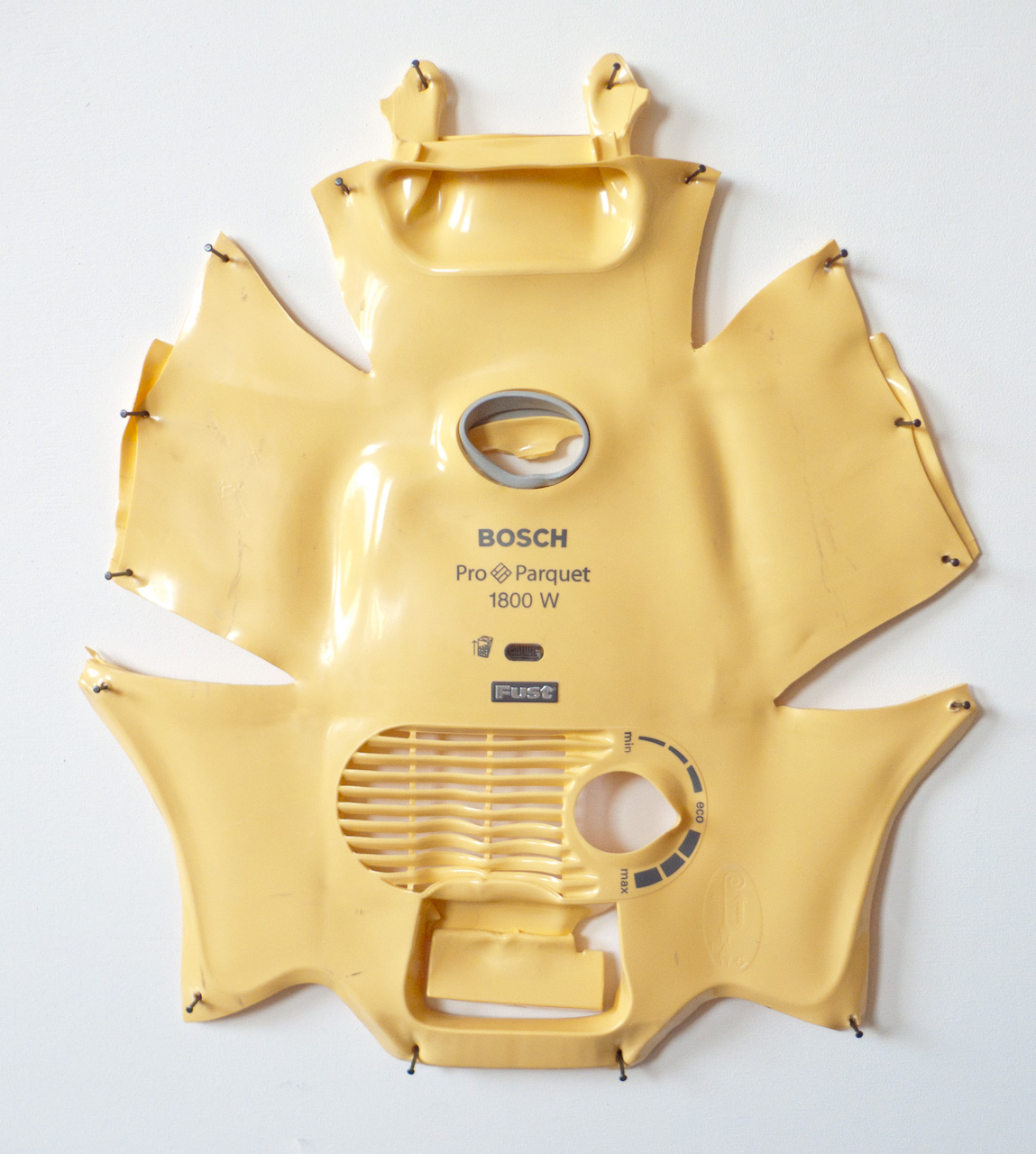In this ongoing series, the artist plays the role of a taxidermist for the everyday household appliances – some on the verge of extinction with the advance of technology. For each electric appliance the plastic shell has been “skinned” like animal hide and flattened to be hung like a wall decoration. In the modern age, appliances are categorized as domestic like animals, and through this immortalizing and anthropomorphic process, without the content, the plastic “skin” becomes just a layer with no function, just a reminder.