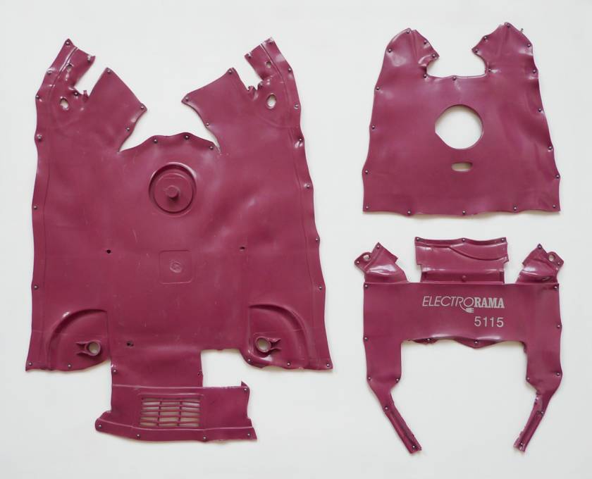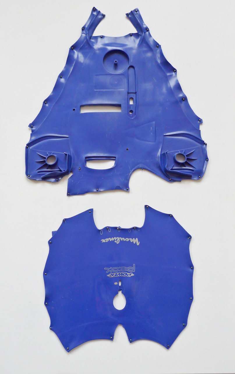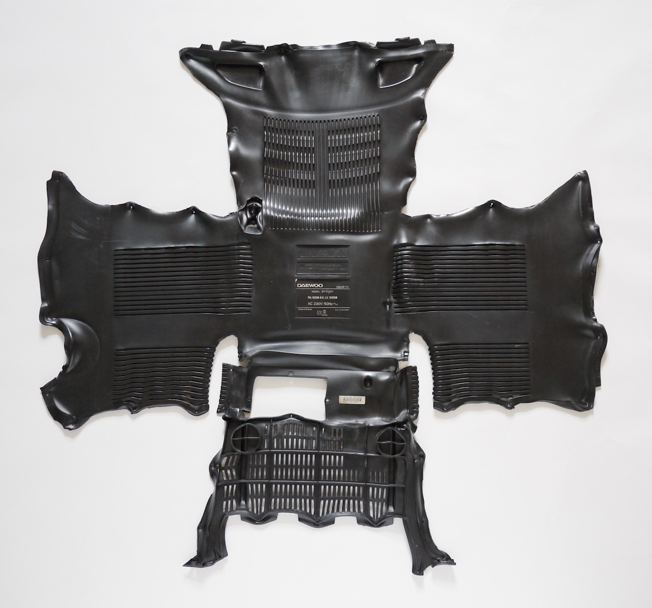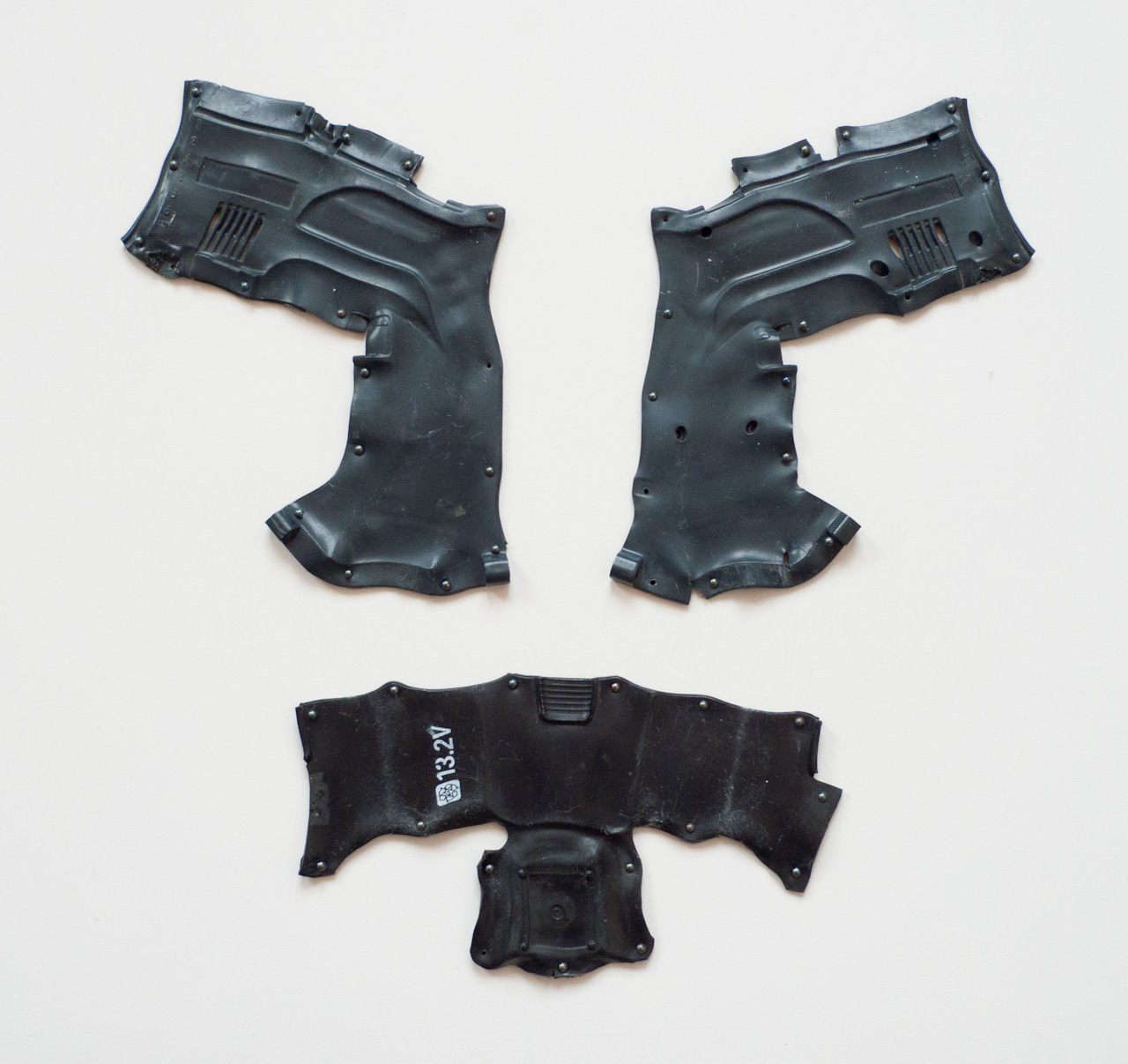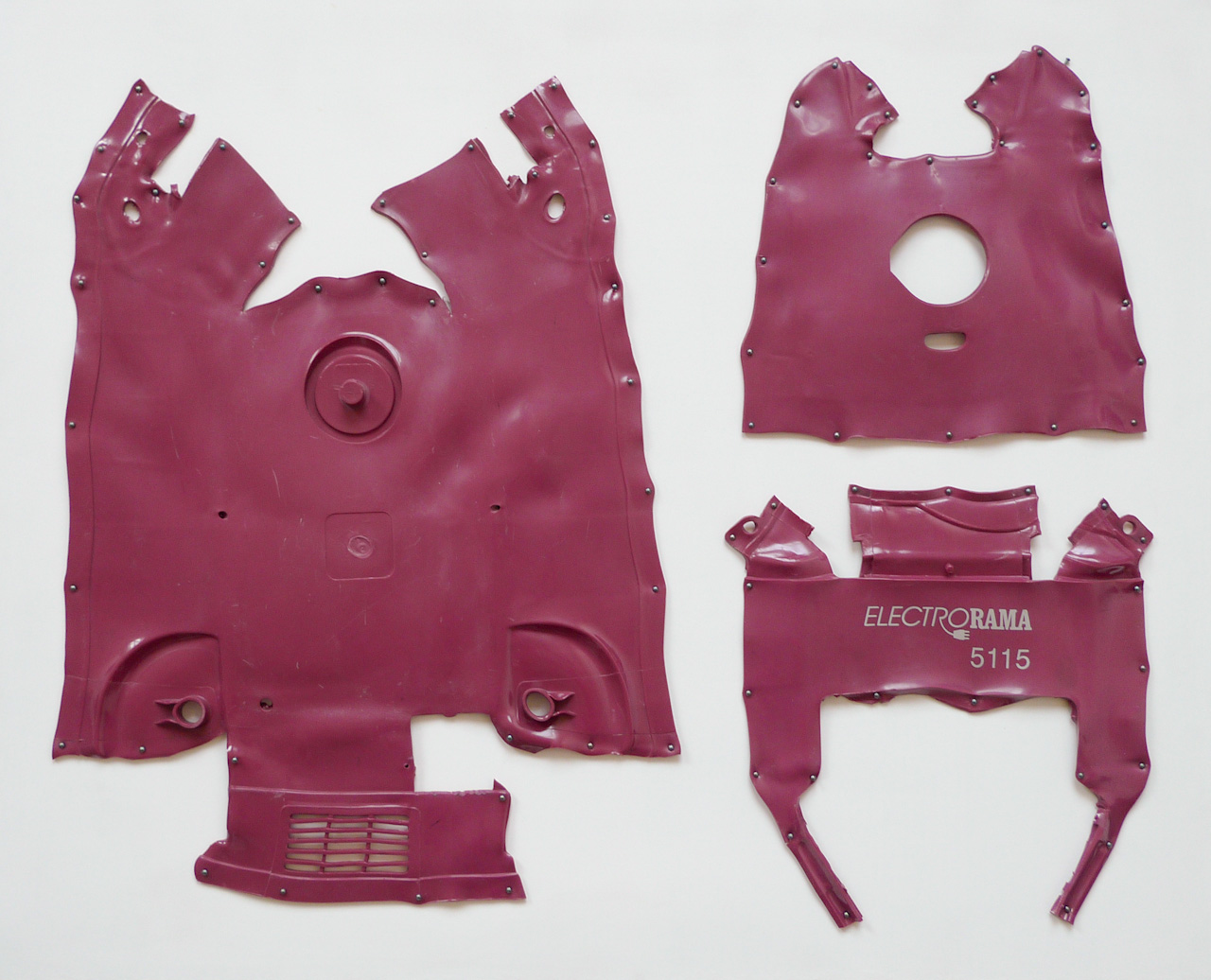In this ongoing series, the artist plays the role of a taxidermist for the everyday household appliances – some on the verge of extinction with the advance of technology. For each electric appliance the plastic shell has been “skinned” like animal hide and flattened to be hung like a wall decoration. In the modern age, appliances are categorized as domestic like animals, and through this immortalizing and anthropomorphic process, without the content, the plastic “skin” becomes just a layer with no function, just a reminder.