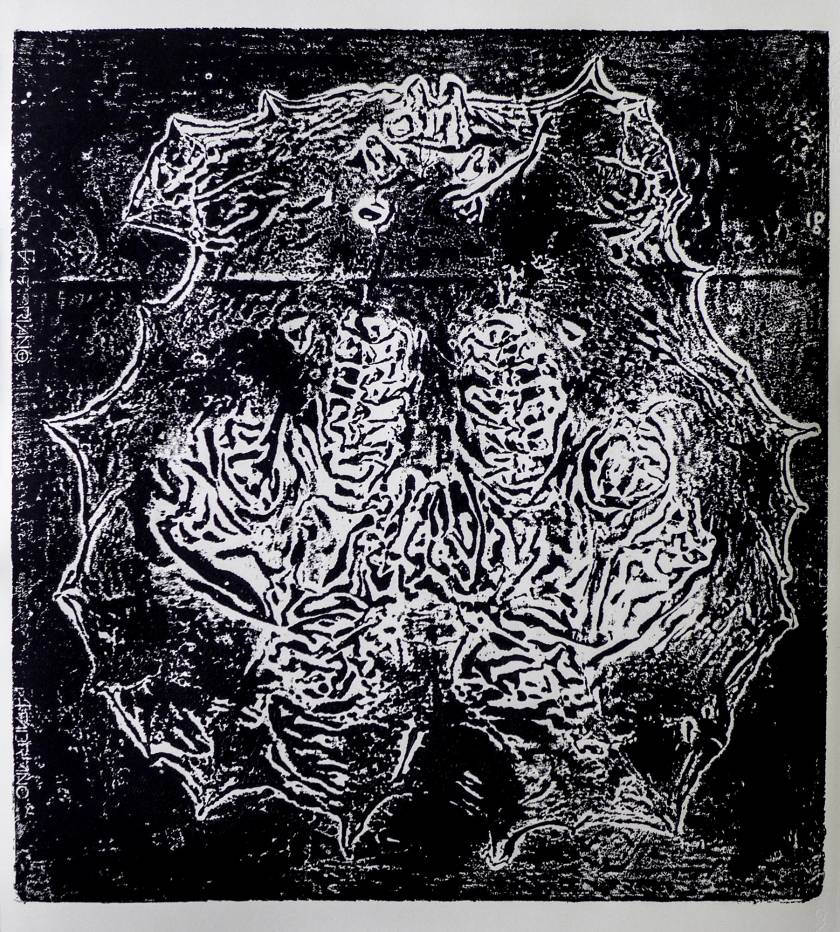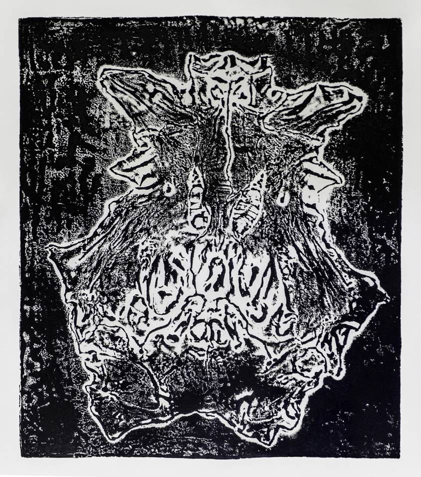 Animals“skull latex molds were flatten to create those imprints representing as well the anatomic morphology of the animal as well as its mental territory.