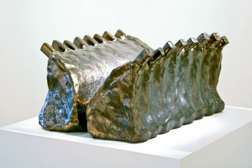 A hybrid piece that makes a link between meat and sports cars with sixteen pork ribs, V16 draws parallels between human’s obsession with and consumption of these two disparate things. The choice of the animal is not without its irony.